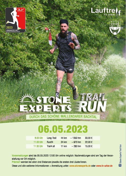 Bereits seit 2017 dürfen wir zusammen mit dem Lauftreff des TV Urbar den jährlichen Stone Experts TrailRun als Sponsor ausrichten. Auch 2023 führte der TrailRun wieder über anspruchsvolle Strecken durch das Mallendarer Bachtal und lockte Läufer aus ganz Deutschland an.